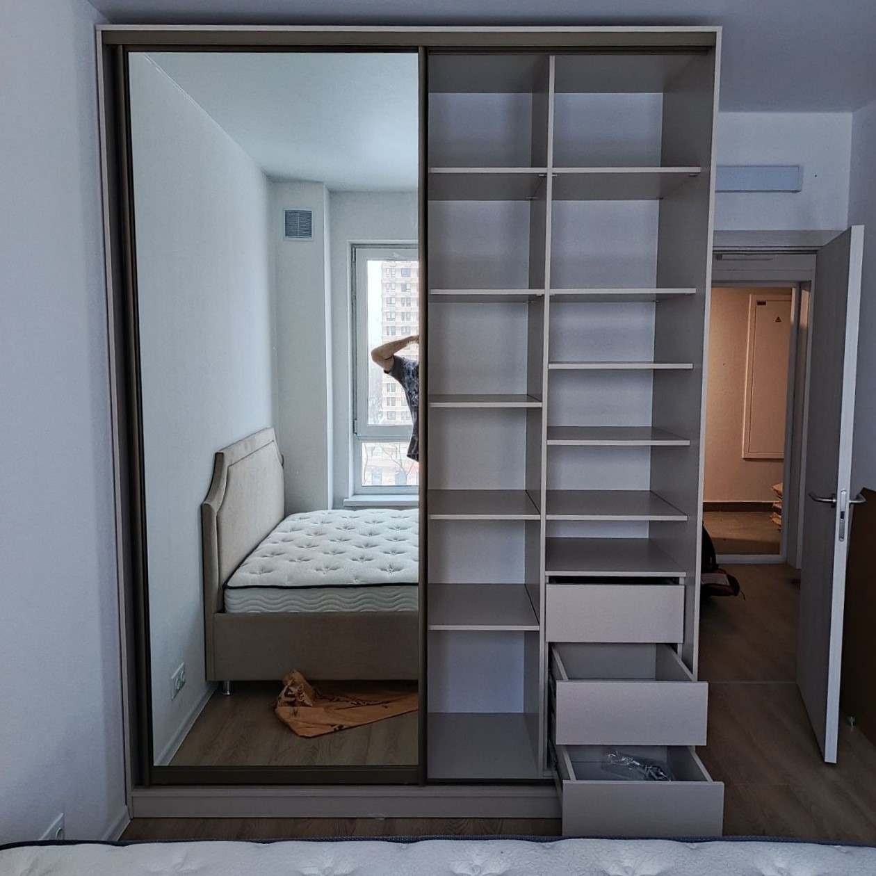 • Подходит для ниш и сложных планировок: часто используется там, где обычный шкаф поставить неудобно.