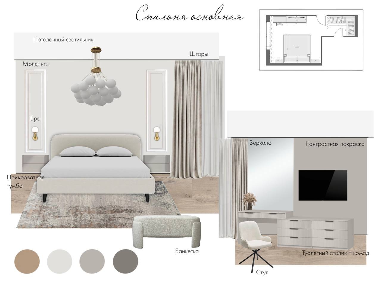 Задача Анастасии: сделать спальню для пары, где есть не только место для сна, но и зона для сборов.
