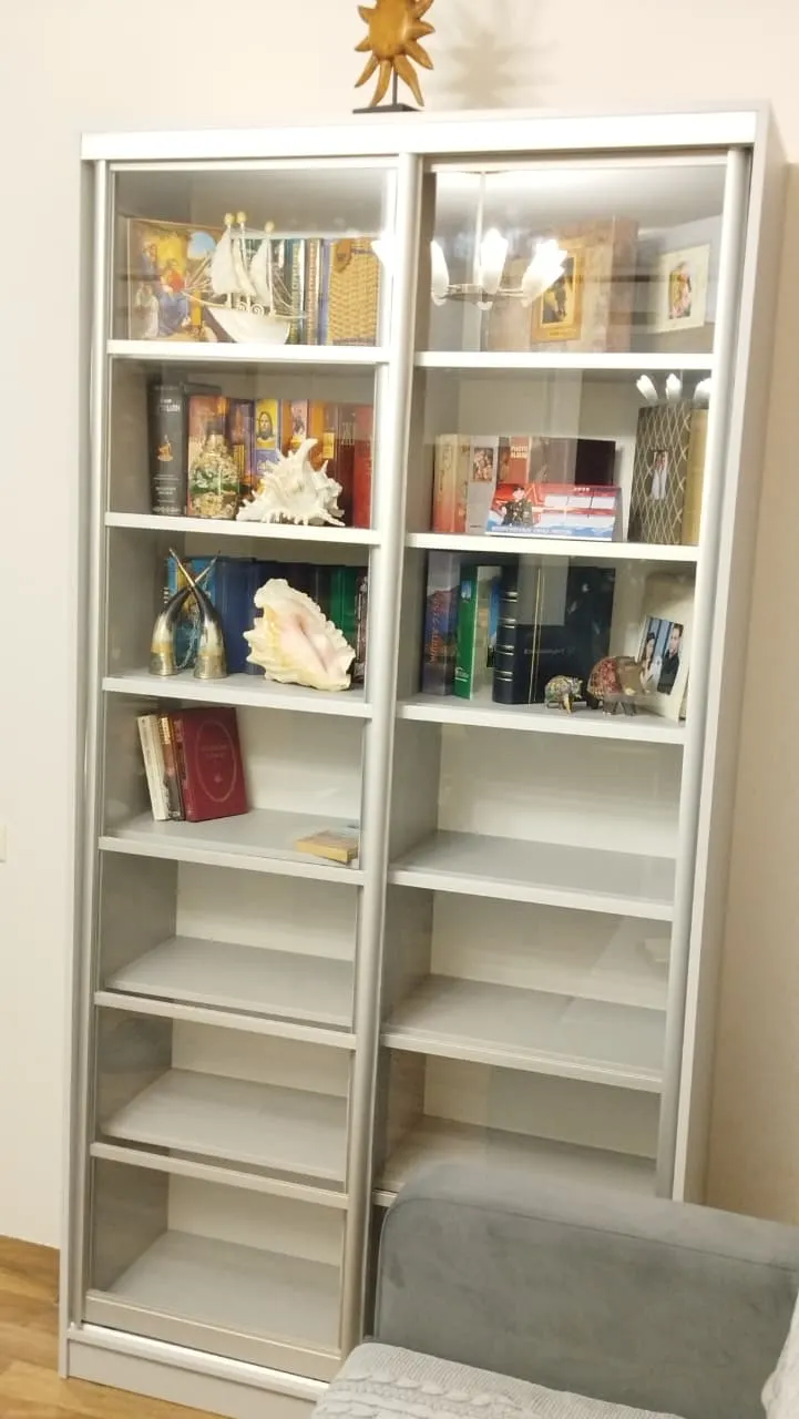 Отличный шкаф!!! Вписался здорово в небольшую комнату у сына. Сборку сделали быстро и качественно. Есть маленький совет: Стеклянные двери лучше делать в отдельном помещении от древесных, так как пыль от стружки налетом плотным легло на стекло. Снаружи еще куда не шло отчистить пылесосом, а вот внутри шкафа пришлось повозиться, так как двери раздвижные и пылесосом туда не добраться.
