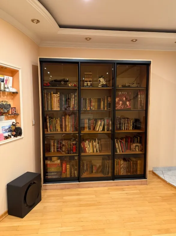 Книжный шкаф-купе Тринити-3-1 4 полки поможет сохранить порядок среди книг, хрупких вещей и предметов коллекции.