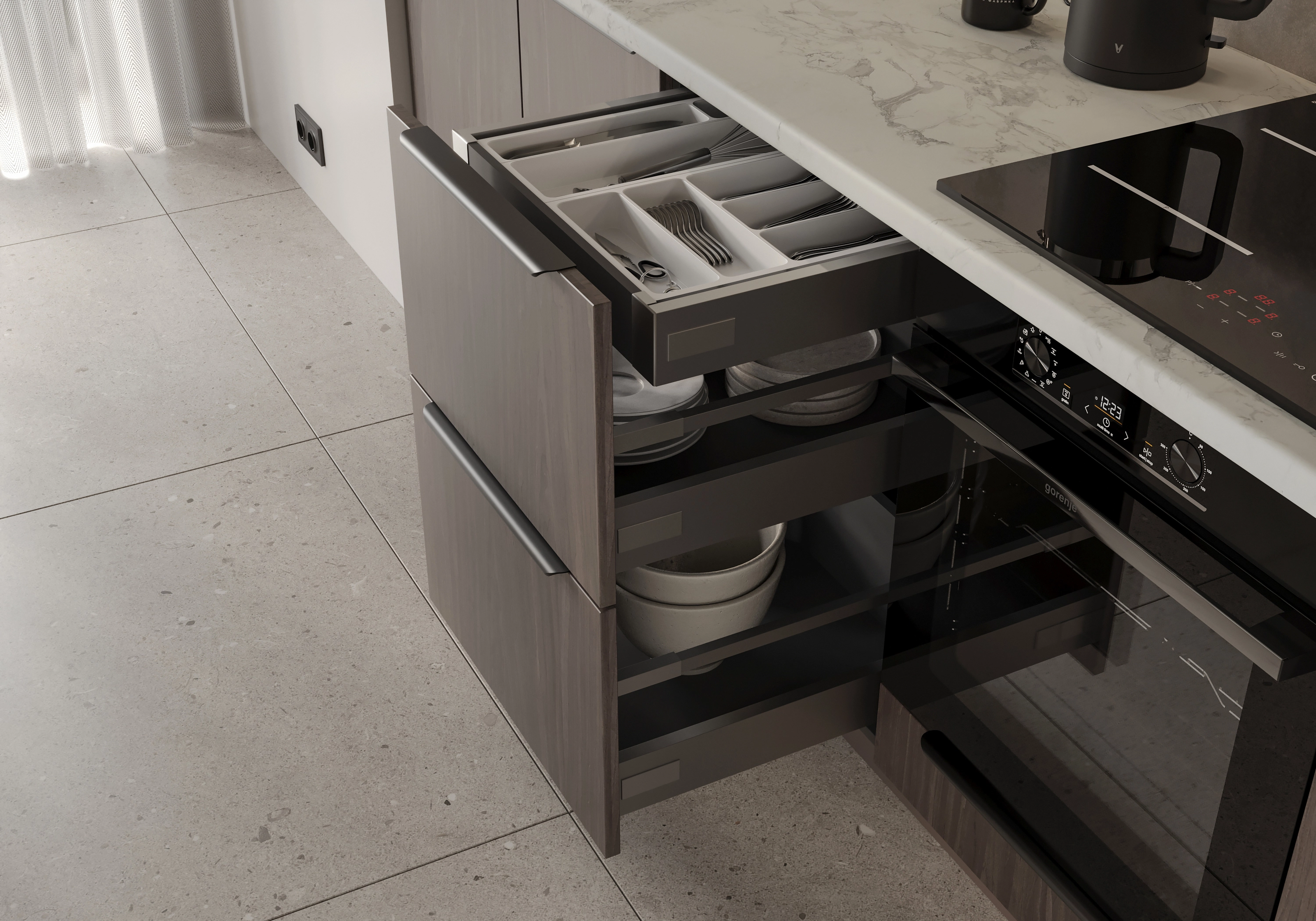 • Выдвижные боксы: Hettich.