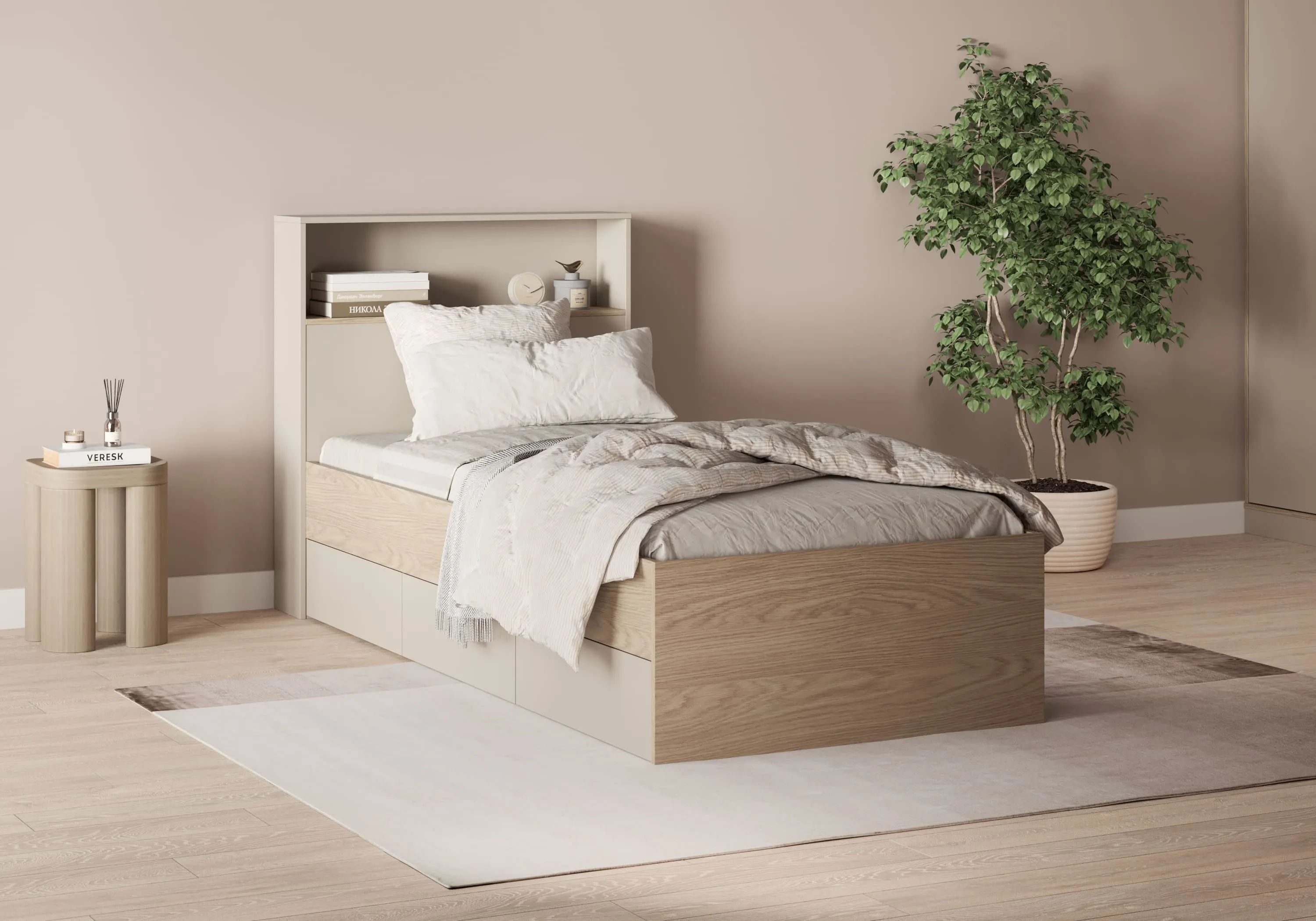 — односпальная комфортная кровать со встроенными ящиками;