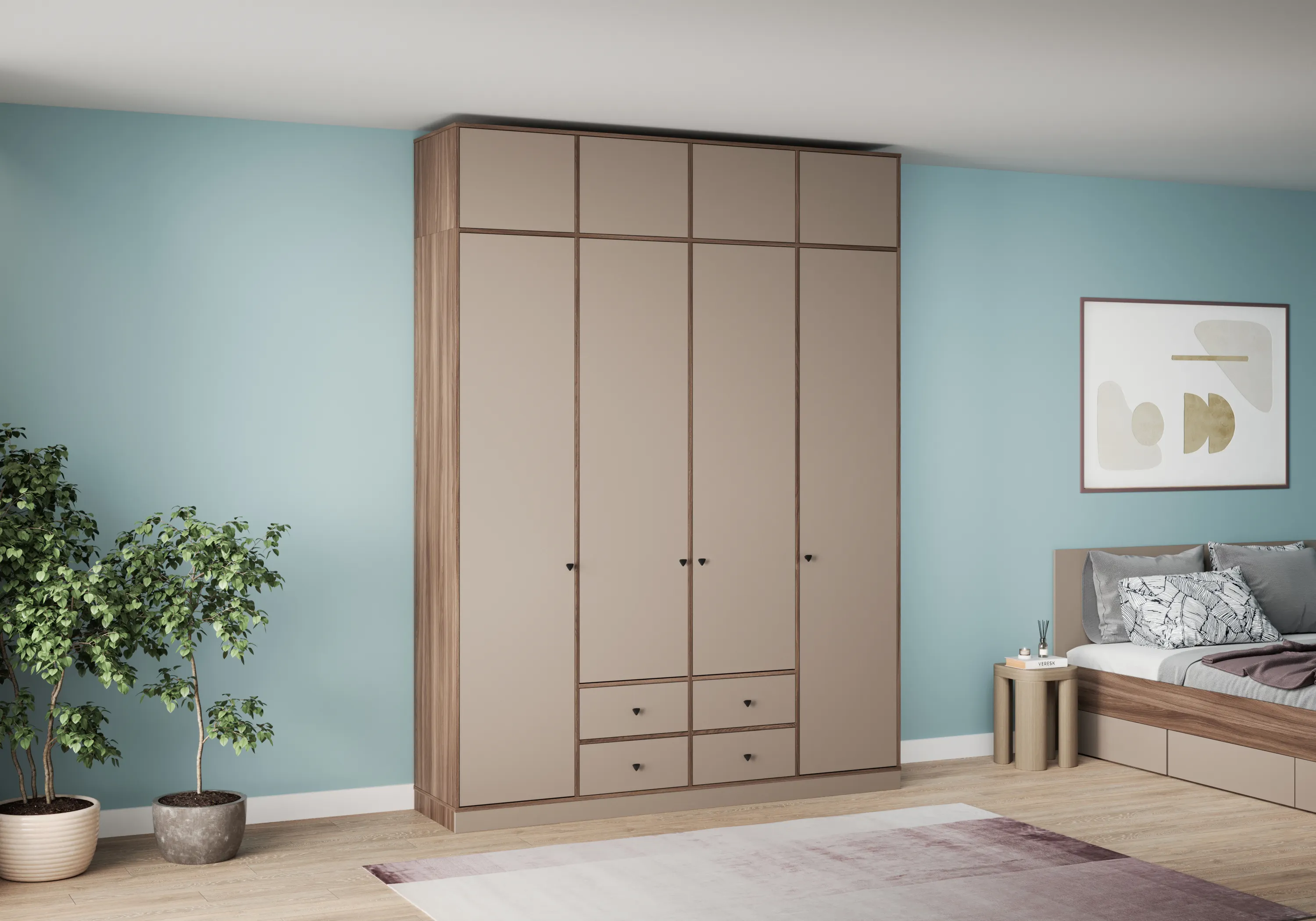 — распашной четырехдверный шкаф с антресолью.