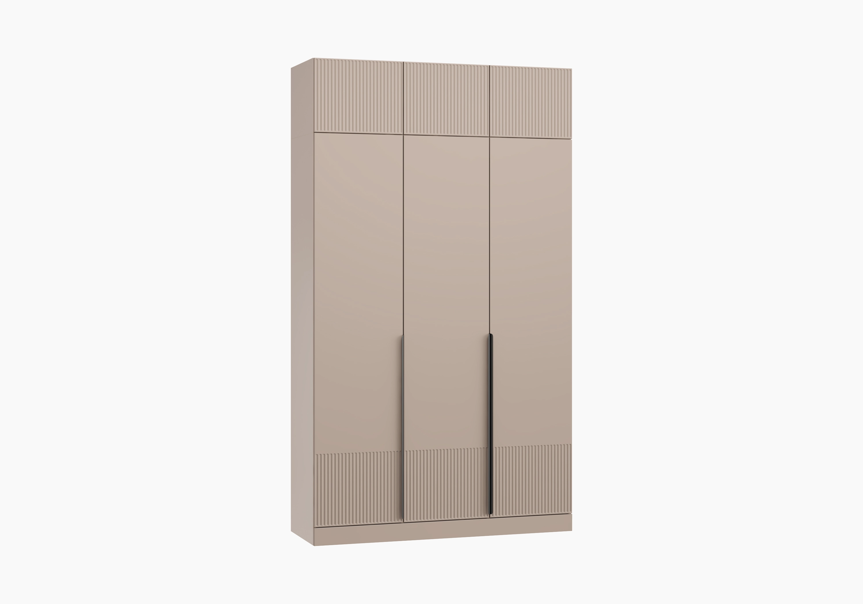 Распашной шкаф Дарио-3 с антресолью — базовый шкаф велюрового цвета с акцентной фрезеровкой на фасадах.