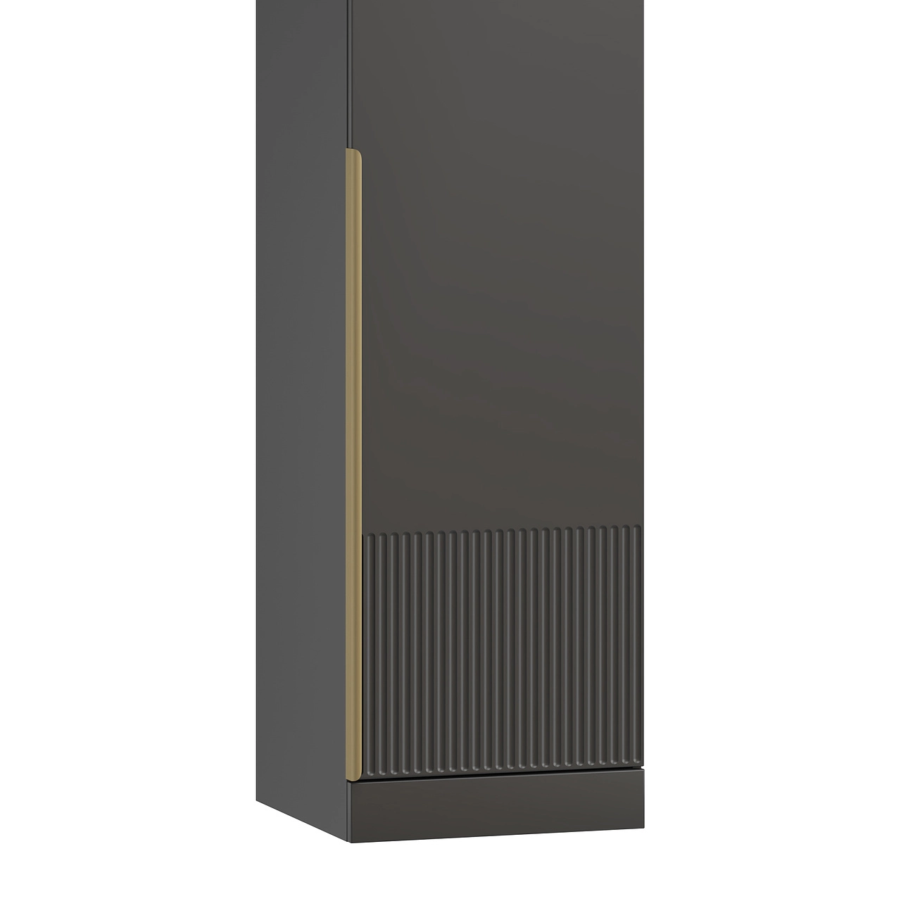 Двери изготовлены из высокопрочного МДФ во влагостойкой пленке ПВХ. Деликатные ручки-скобы длиной 160 мм обеспечивают удобный обхват. Вертикальная фрезеровка создана с оглядкой на рельеф античных колонн.