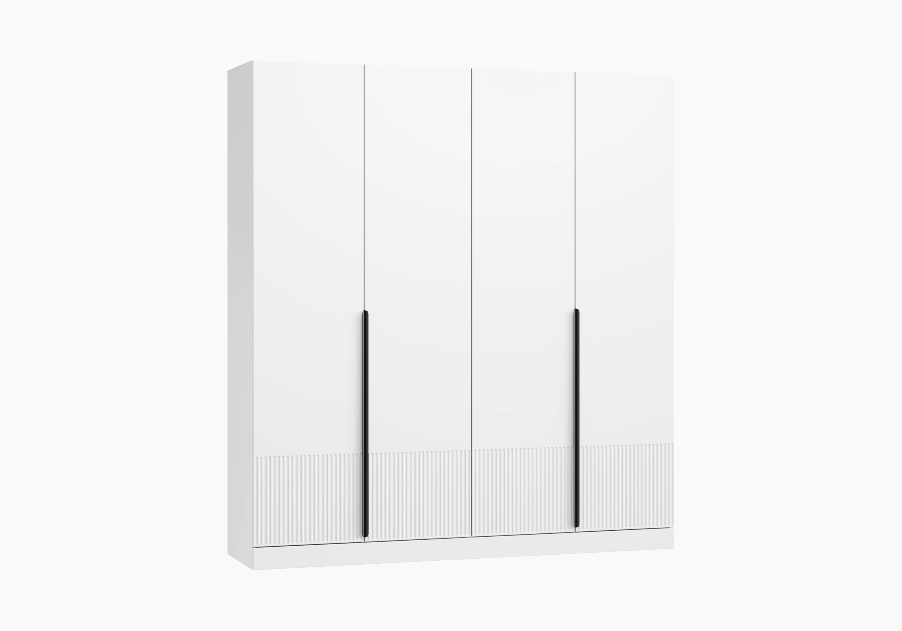 Фасад у основания украшен ребристой фрезеровкой, напоминающей каннелюры античных колонн. Черные ручки-скобы из металла — эффектный акцент на каждой створке. Лицевая часть изготовлена из плотного и влагостойкого МДФ в защитном покрытии ПВХ.