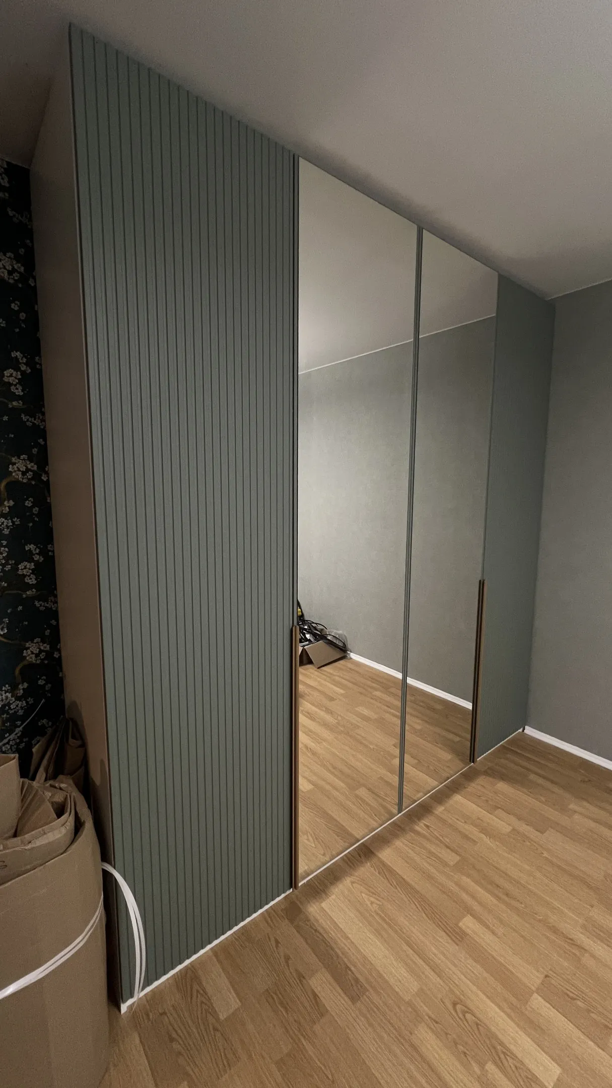 Черные торцевые ручки защищены от коррозии. 2D фрезеровка повышает привлекательность Эйн, визуально вытягивая его в высоту. Два зеркальных фасада удобны во время примерки одежды.