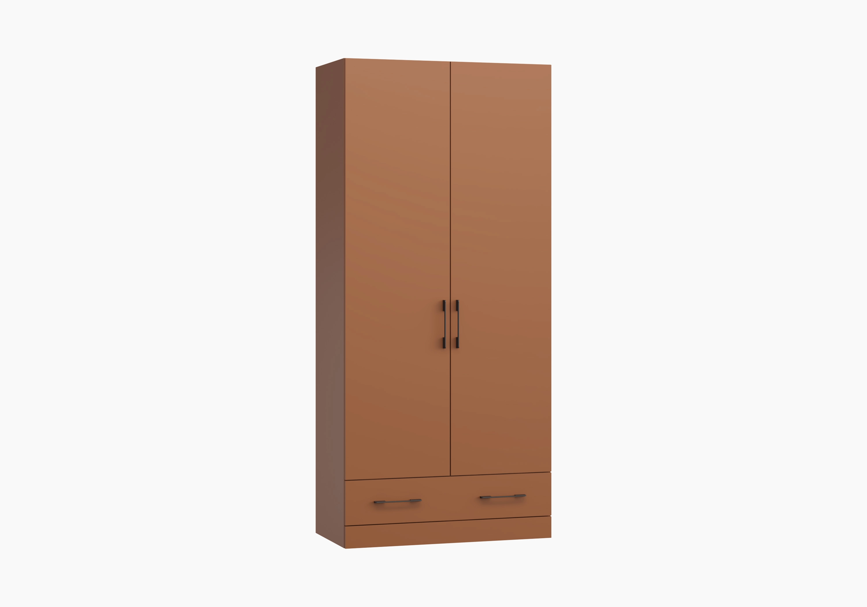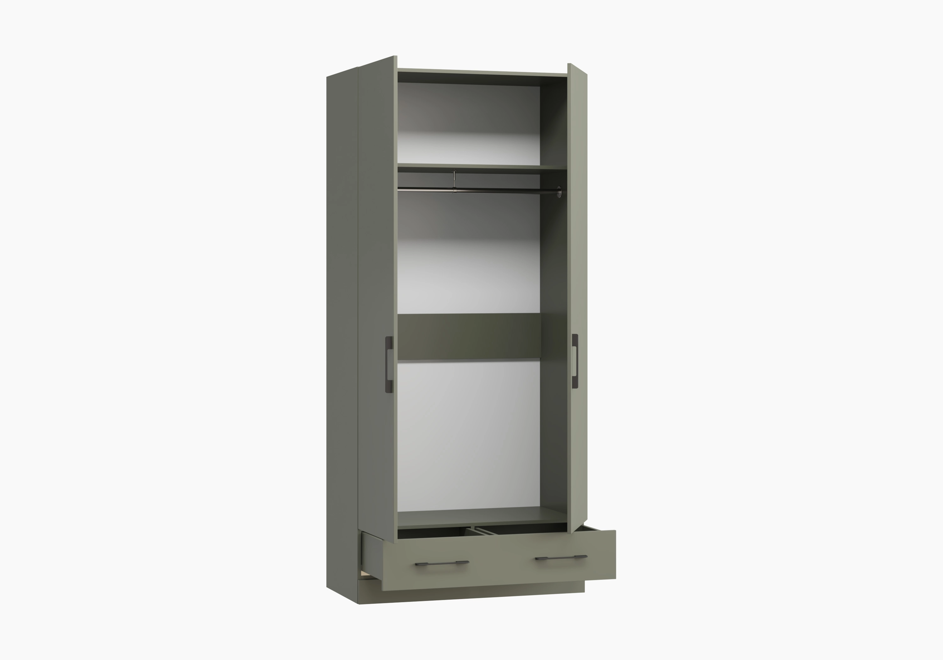За выдвижным фасадом располагается два ящика, при ширине изделия до 900 мм устанавливается одна ручка по центру фасада, от 900 мм устанавливается две ручки.