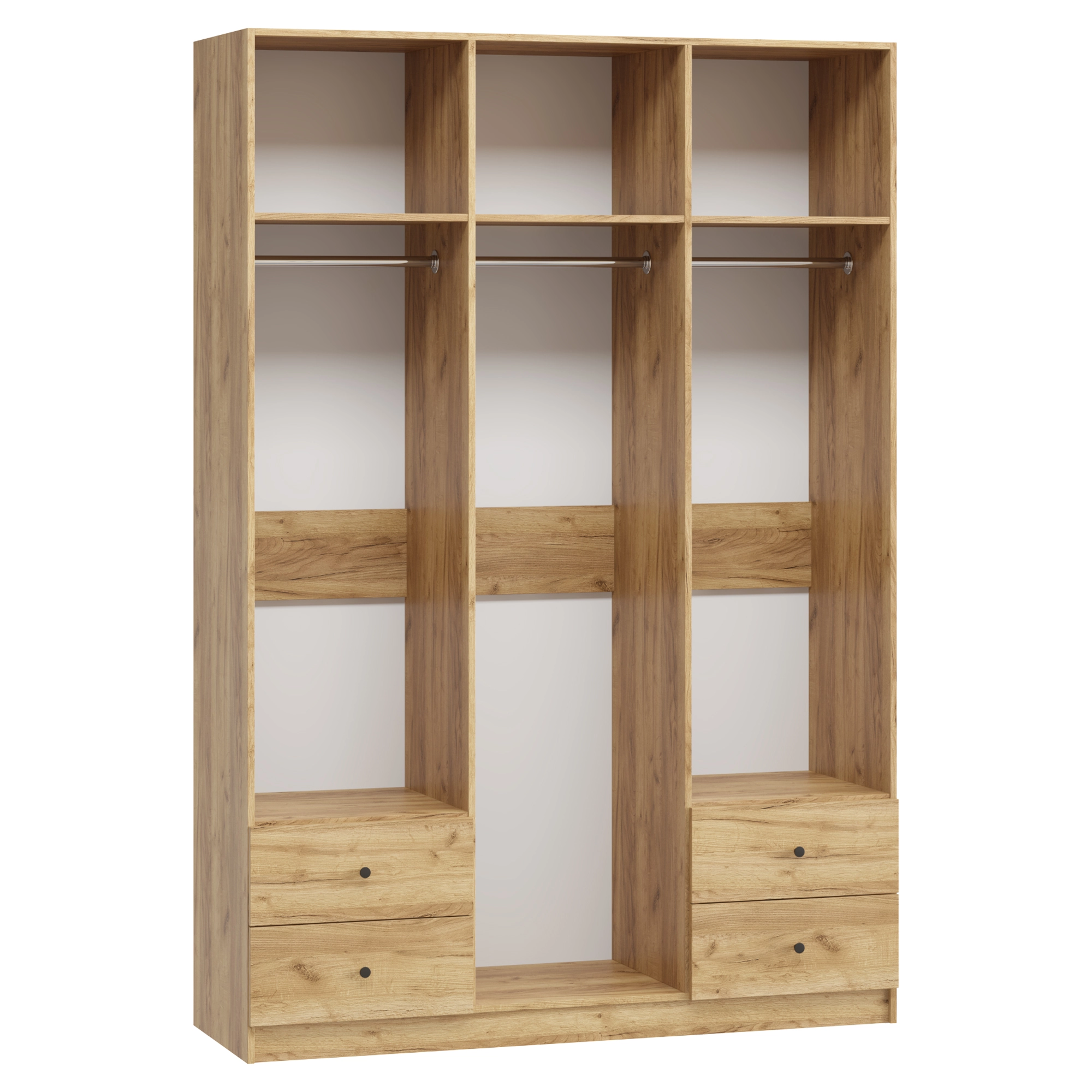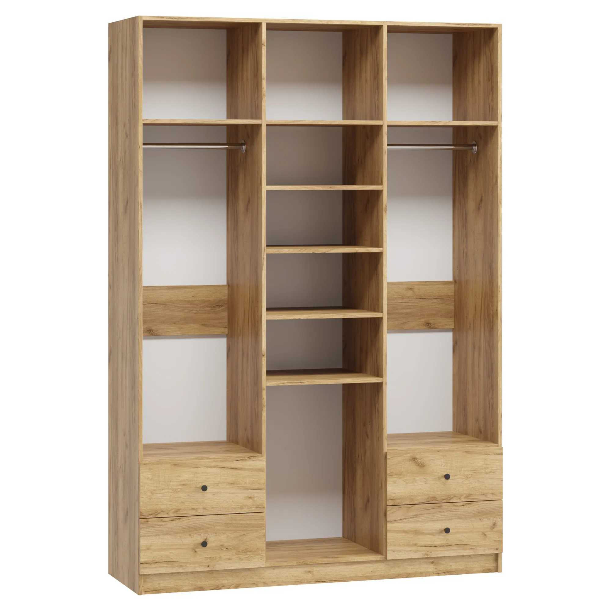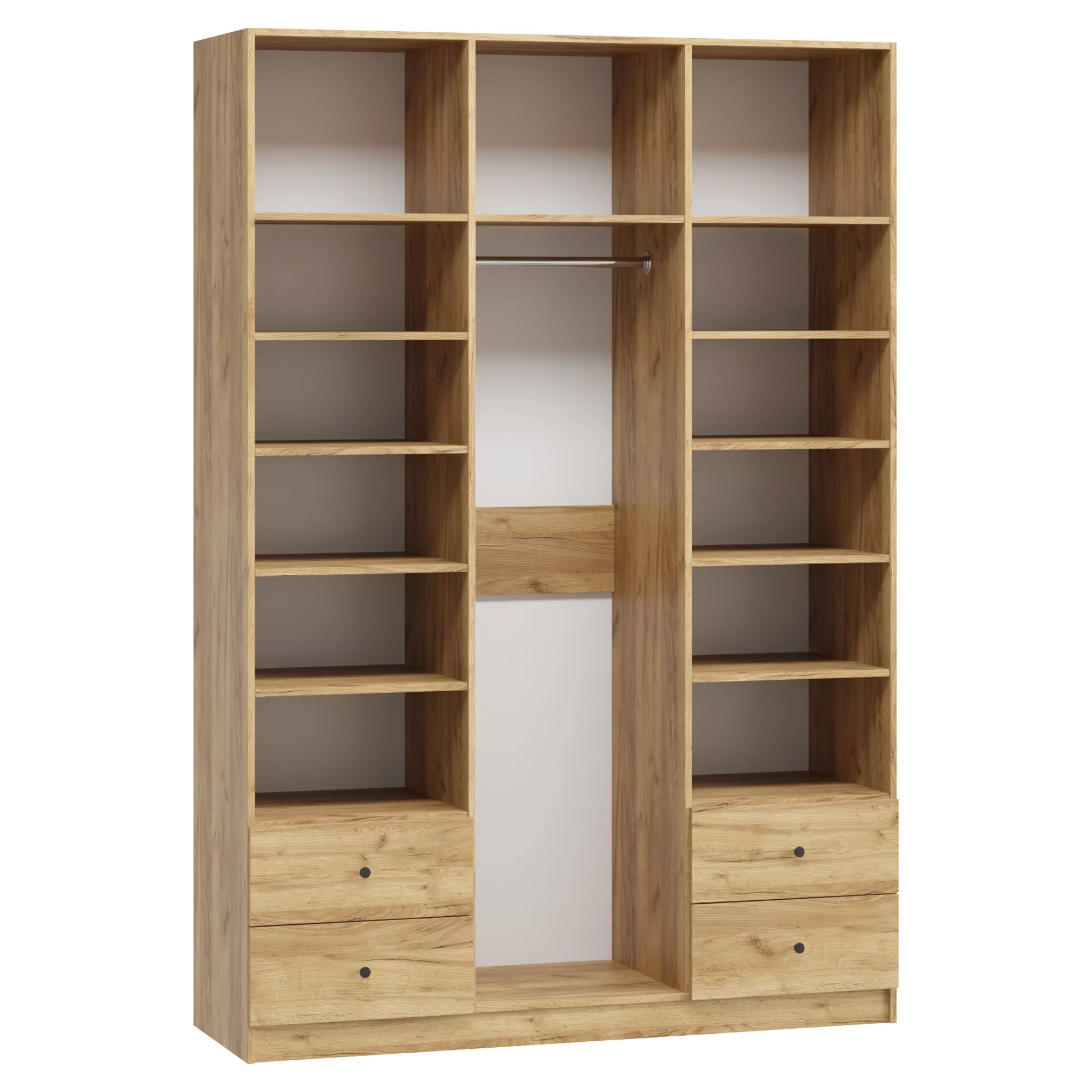 В отделение с полками над ящиками при высоте от 1900 мм до 2100 мм устанавливается 4 полки, при высоте от 2100 мм до 2500 мм устанавливается 5 полок.