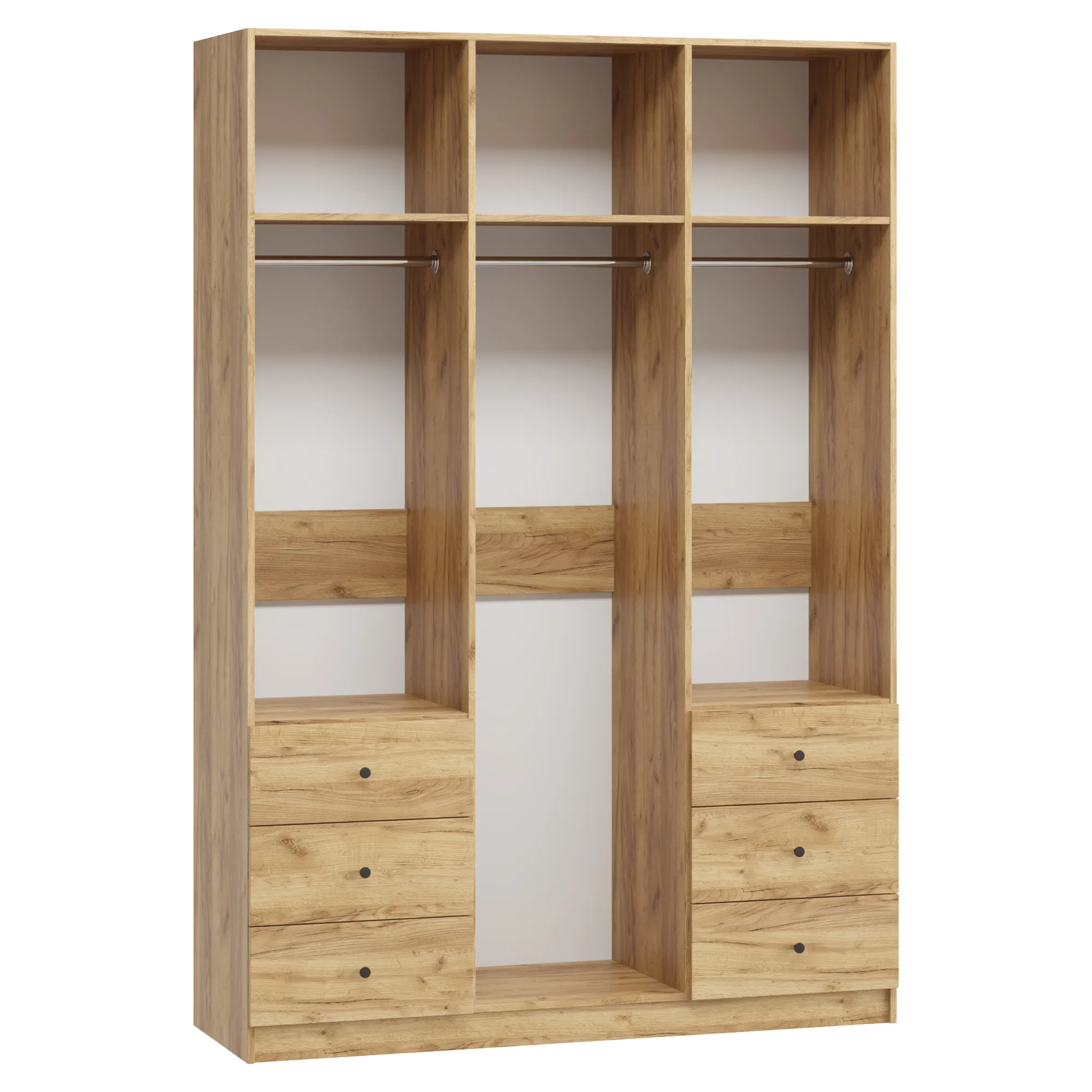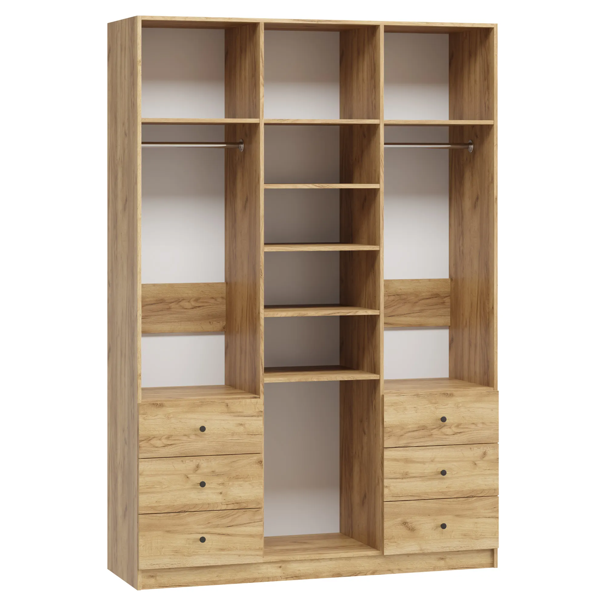 В отделение с полками над ящиками при высоте от 1900 мм до 2100 мм устанавливается 3 полки, при высоте от 2100 мм до 2300 мм устанавливается 4 полки, при высоте от 2300 мм до 2500 мм устанавливается 5 полок.