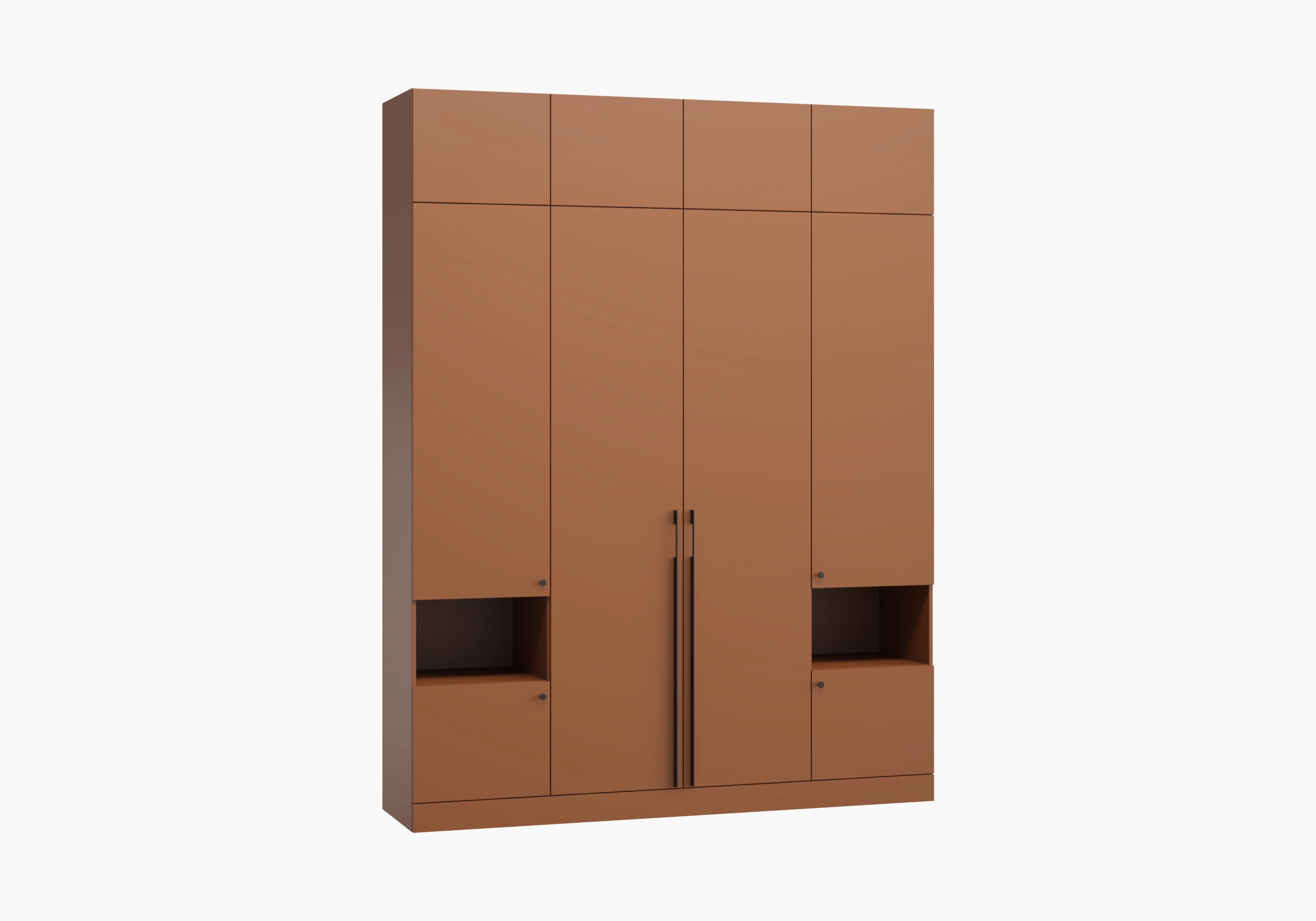 В отделение с полками над нишей при высоте от 1900 мм до 2100 мм устанавливается 3 полки, при высоте от 2100 мм до 2300 мм устанавливается 4 полки, при высоте от 2300 мм до 2500 мм устанавливается 5 полок.
