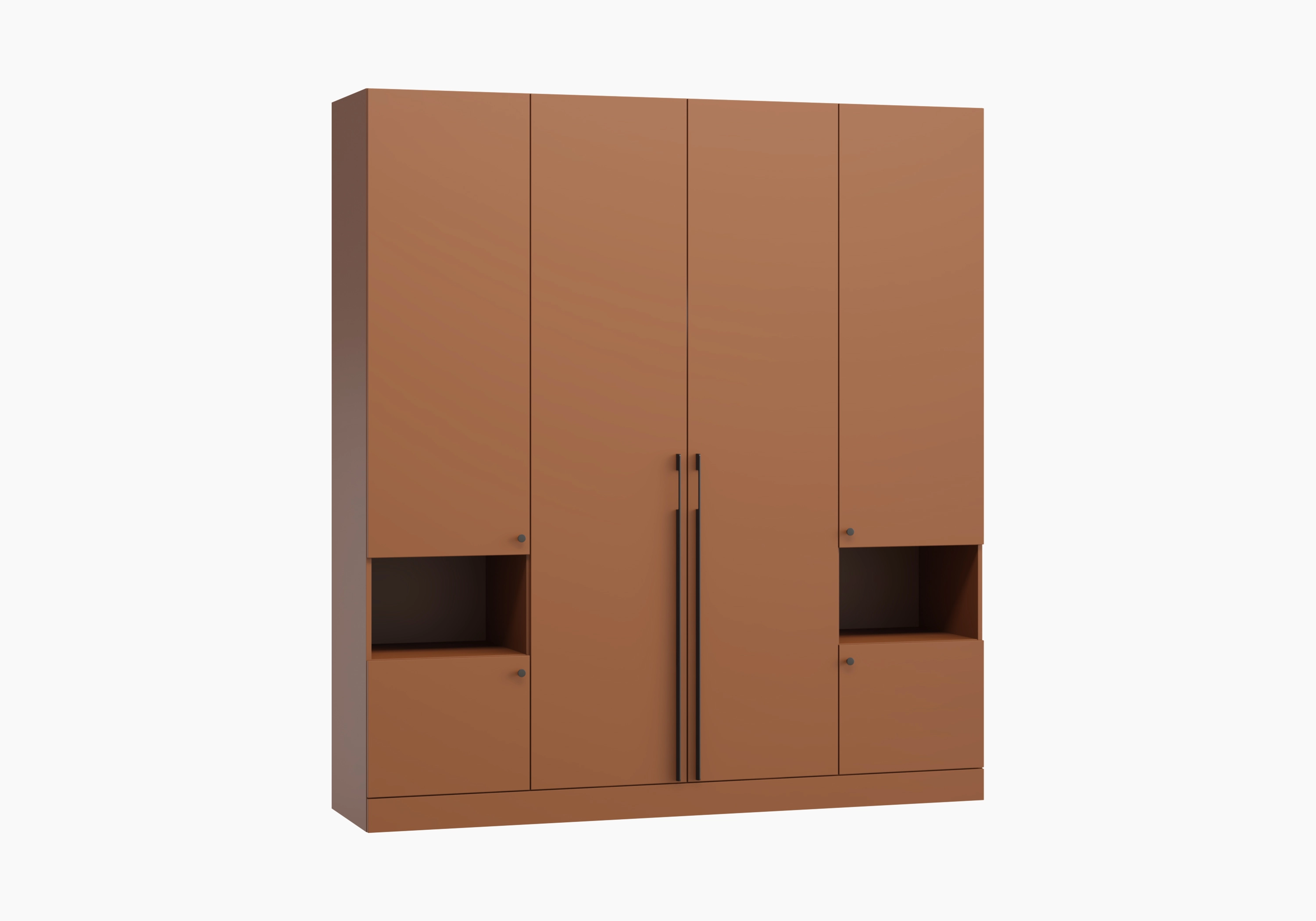 В отделение с полками над нишей при высоте от 1900 мм до 2100 мм устанавливается 3 полки, при высоте от 2100 мм до 2300 мм устанавливается 4 полки, при высоте от 2300 мм до 2500 мм устанавливается 5 полок.