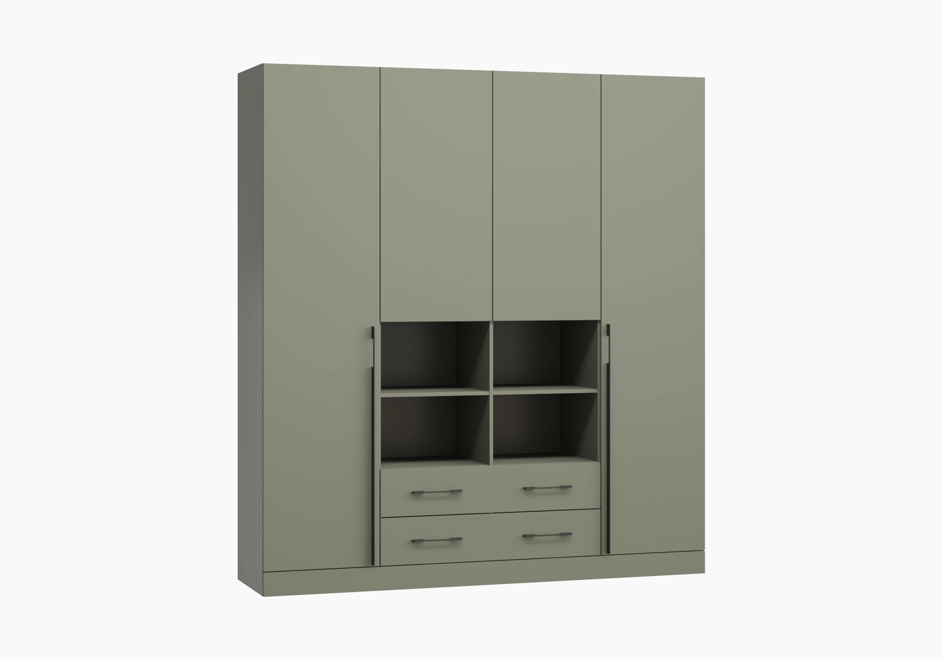 За выдвижными фасадами распологается по два ящика, при ширине фасада до 900 мм устанавливается одна ручка по центру фасада, от 900 мм устанавливается две ручки. .