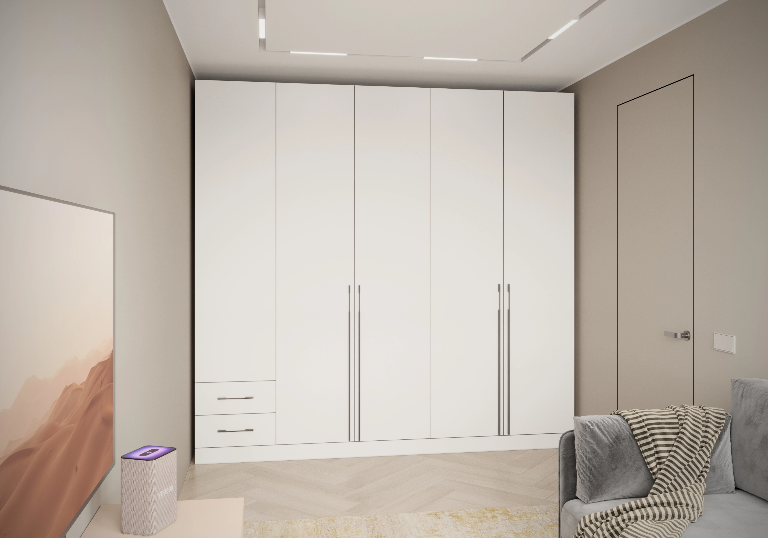 При ширине более 2700 мм шкаф конструктивно делится на две части.