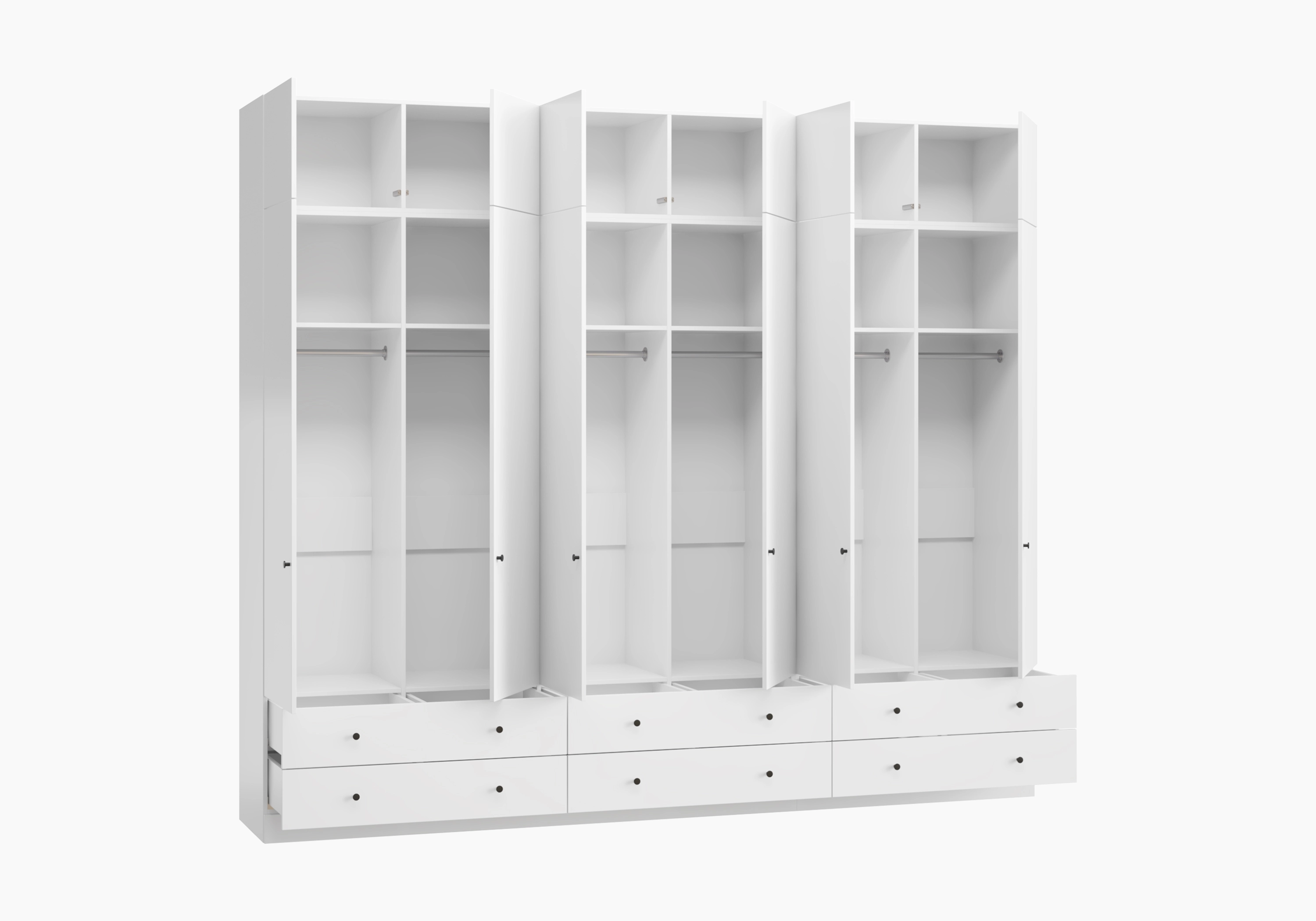 • При ширине более 2700 мм шкаф конструктивно делится на две части.