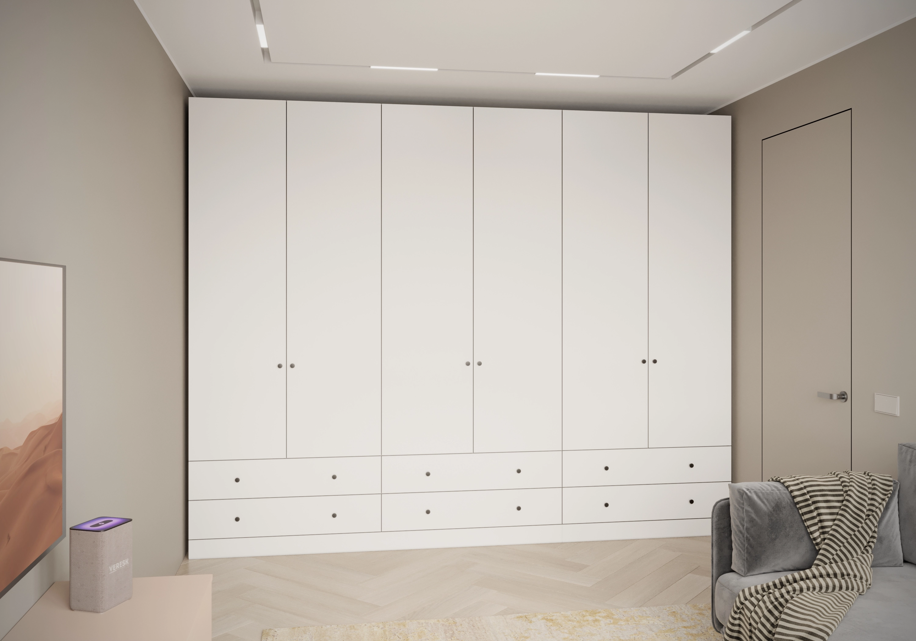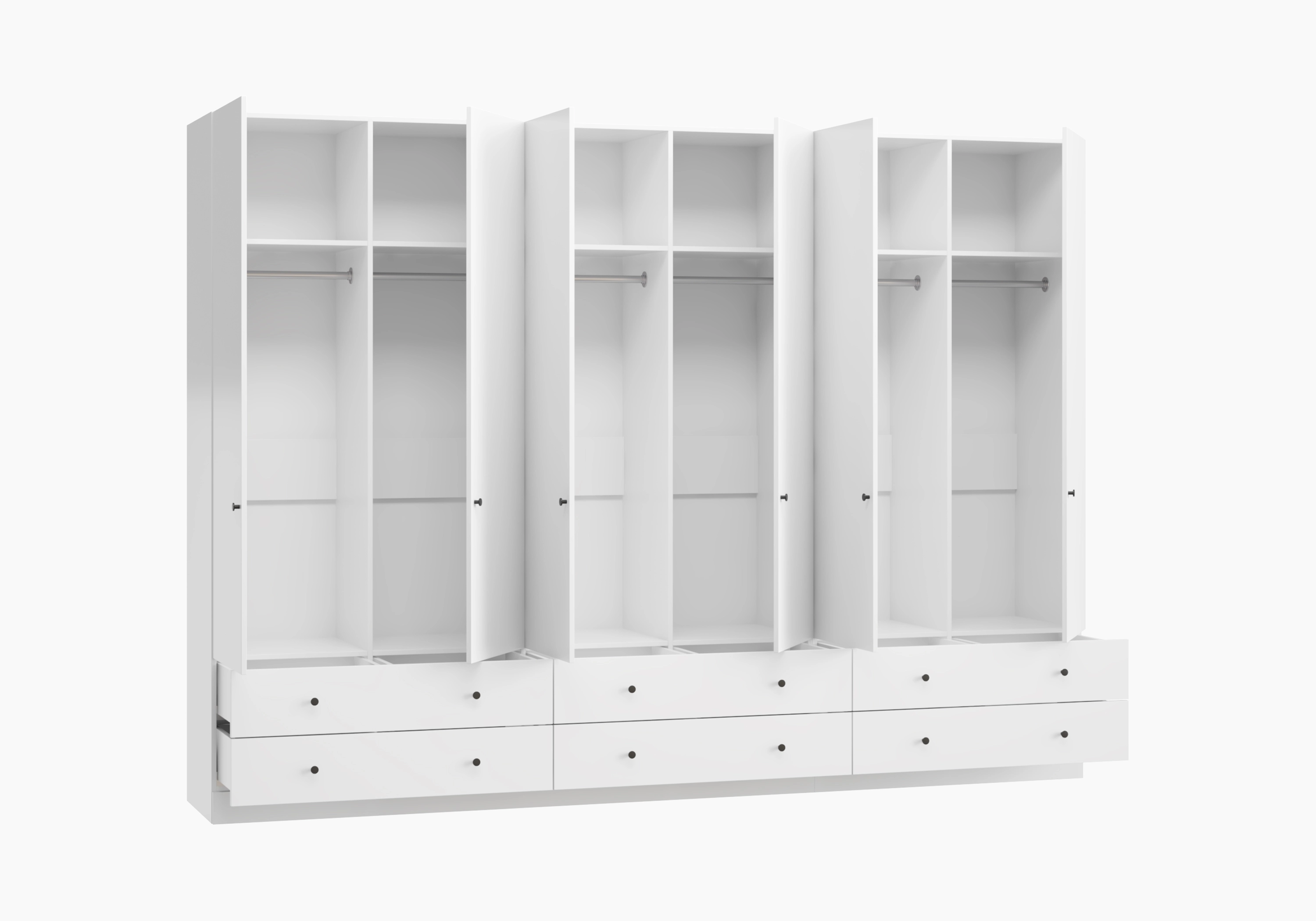 При ширине более 2700 мм шкаф конструктивно делится на две части.
