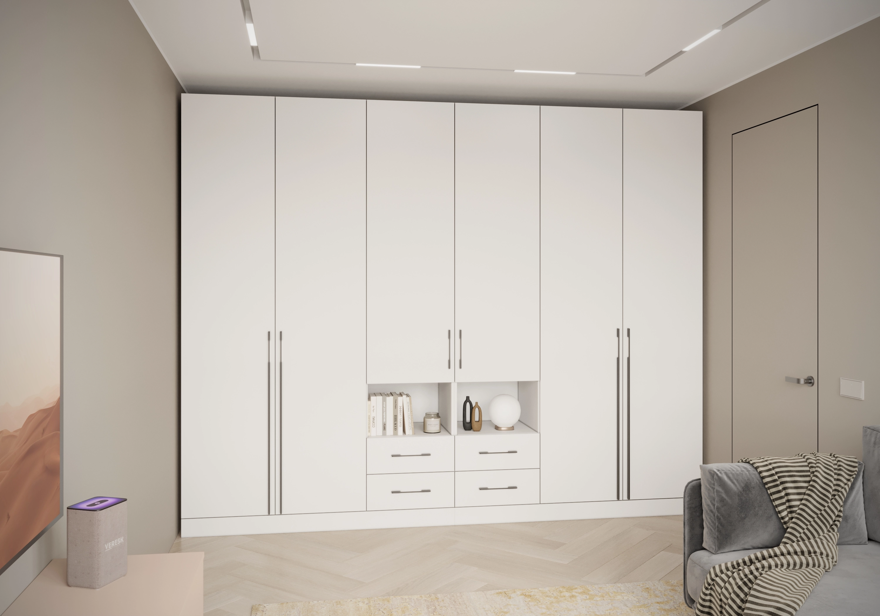 При ширине более 2700 мм шкаф конструктивно делится на две части.