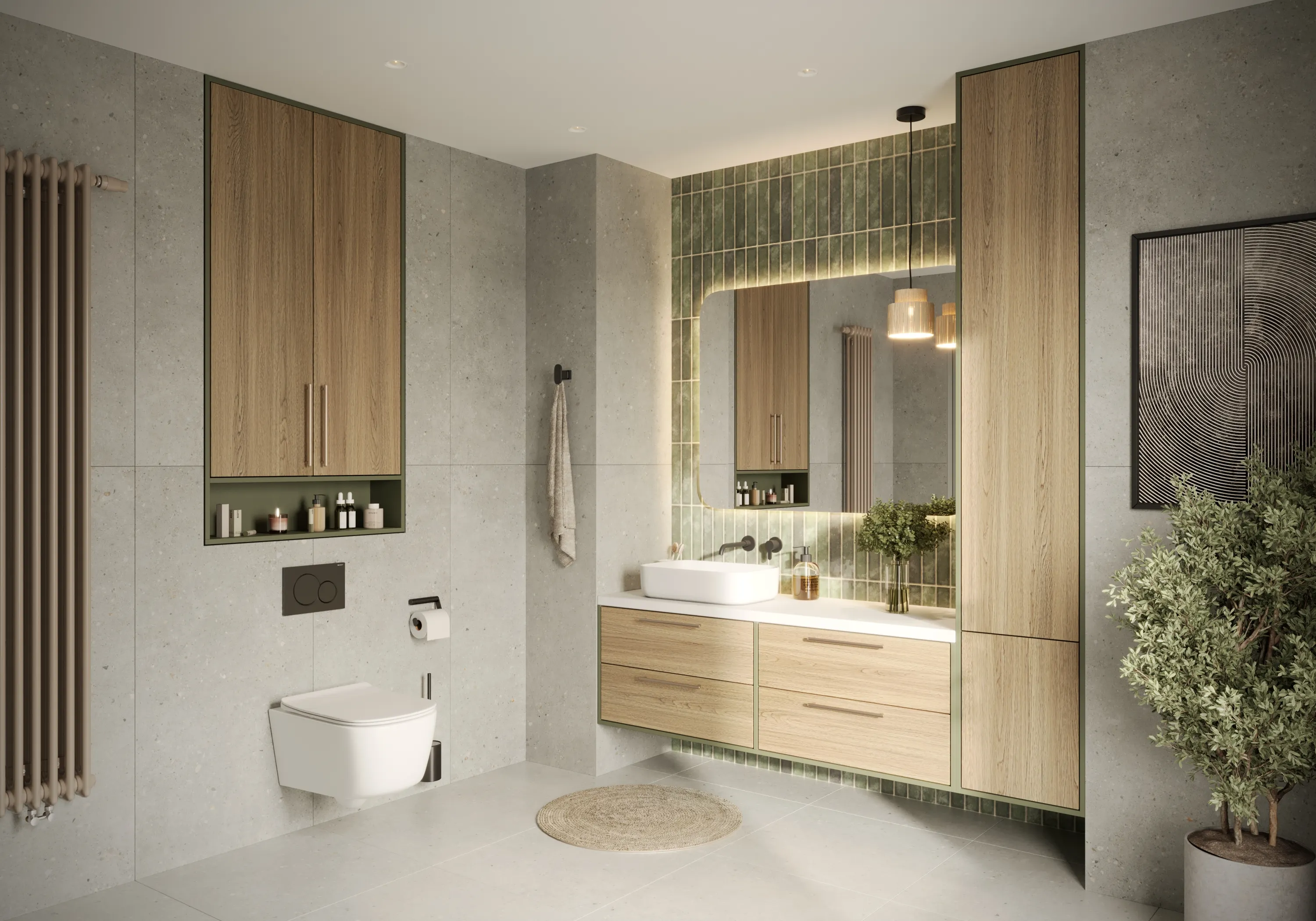 Сборный корпус состоит из МДФ в пленке soft-touch и ЛДСП класса Е1. Крепкая фурнитура обеспечивает изделие износостойкостью и практичностью.