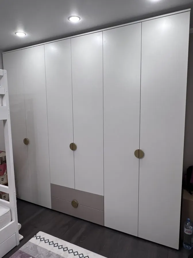 Хочу отметить работу всех на этапах. Менеджер- заказали в шоу руме, далее была связь в чате. Через время звонили с фабрики, еще раз подтвердили заказ. Доставка звонила в оговоренный день, за час набрали до приезда, я просила. Никакую помощь не принимал курьер, все сам) сборщик звонил тоже в назначенный день, приехал четко. Все пояснил, рассказал, собрал) шкаф брали 260*240 (высота)*60. Шкафом остались довольны, да прошло времени мало, но очень надеемся, что мнения не изменим. У нас белый с фасадом ящиков Велюр. Планирую брать еще и столы письменные из этой коллекции.