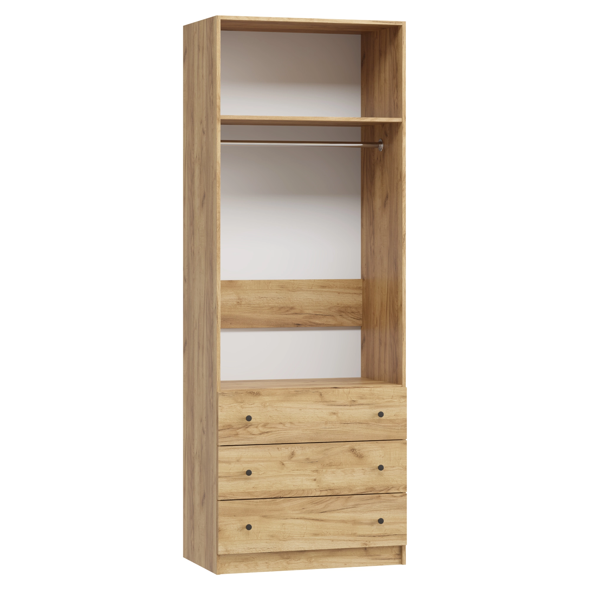Модель отличает наличие трех широких нижних ящиков, в которые можно сложить одежду на любой сезон. Благодаря шариковым направляющим они легко достаются, предоставляя 100% обзор на содержимое