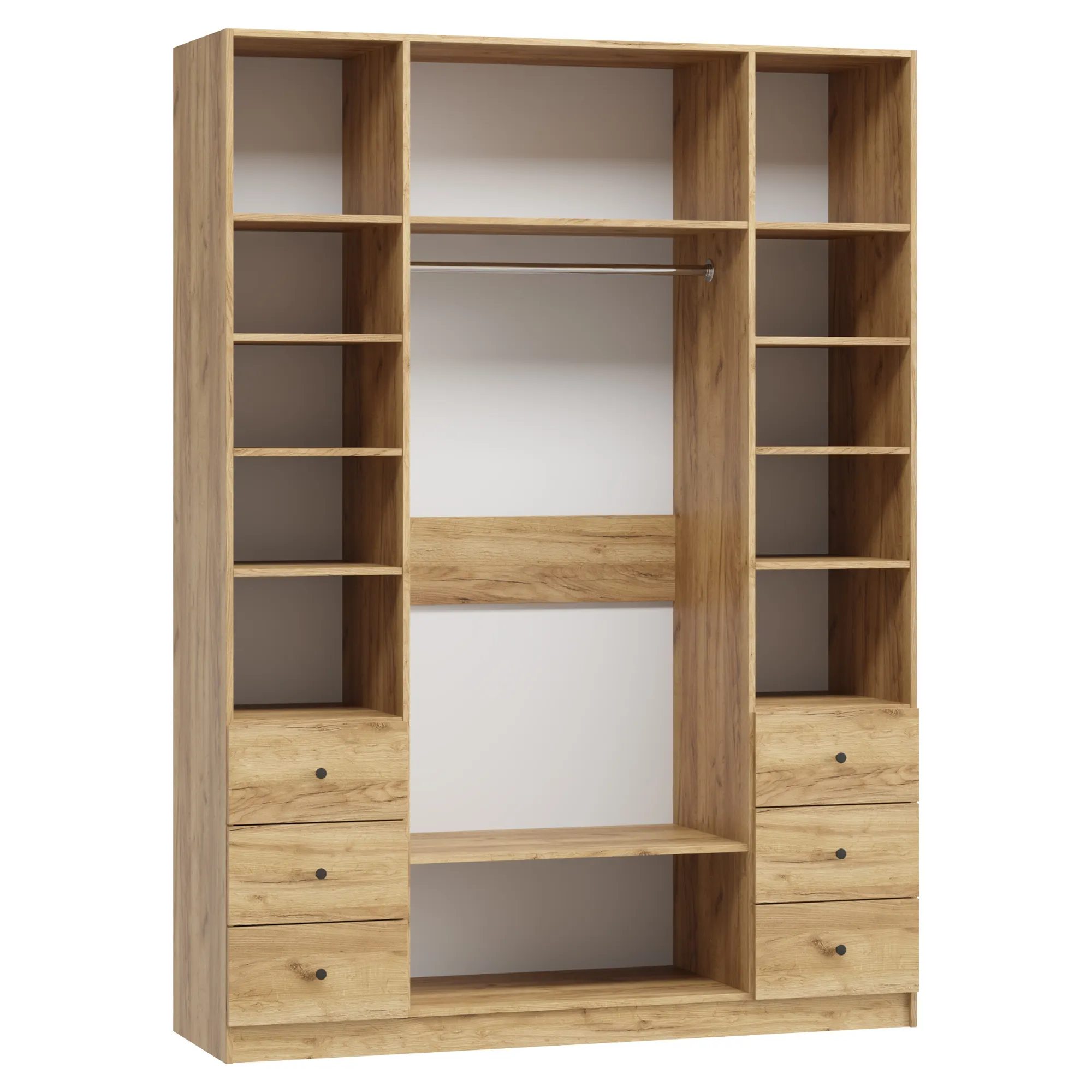 • При высоте от 1800 мм до 2000 мм в отделение Белье над ящиками устанавливается 3 полки; при высоте 2100 мм и 2200 мм - 4 полки; при высоте 2300 и выше - 5 полок.