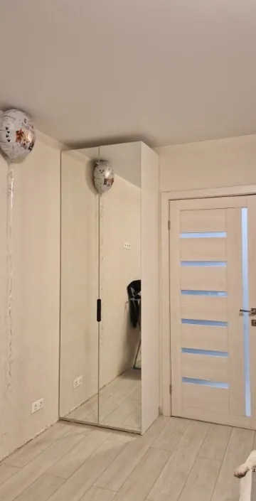 Зеркальные двери визуально облегчают интерьер и улучшают освещение в комнате, что особенно ценно в небольших помещениях. Торцевые ручки в цвете Хром гармонично вписываются в дизайн и удобны в обхвате.