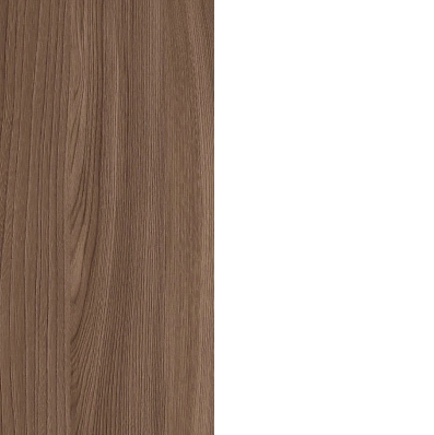 Модель достаточно проста по форме, но выглядит эффектно за счет контрастных оттенков, в которых исполнена: белый и Ясень шимо. Каждая деталь продумана до мелочей. Все дверцы шкафа обрамлены в белую рамку шириной 8 см, сверху располагается карниз в древесном цвете, как и боковые створки. Завершенный вид модели придают удобные черные ручки-скобы, которые гармонируют с общей композицией изделия.