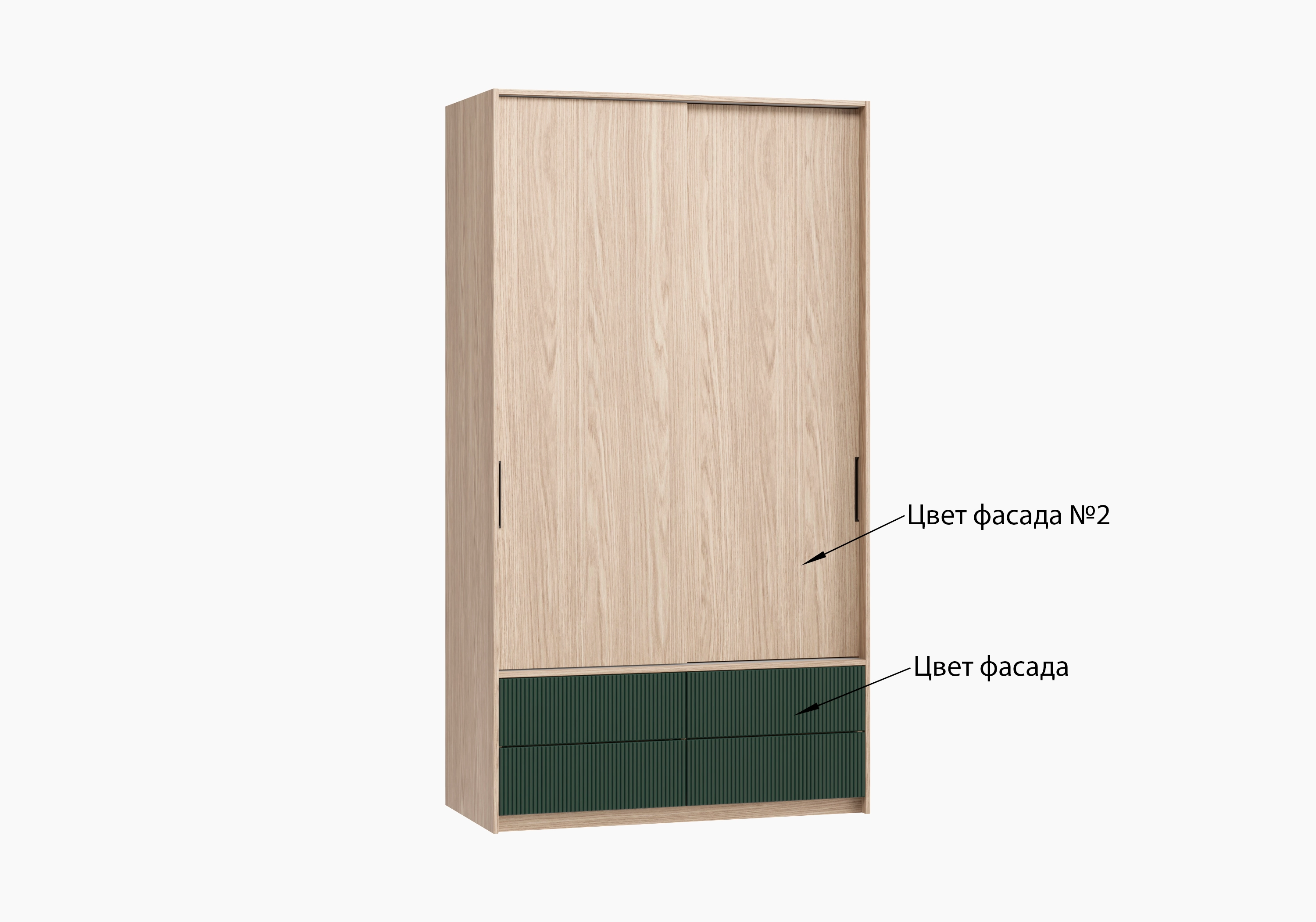 Вертикальная фрезеровка на фасадах ящиков придает больше шарма и эстетики. Врезные ручки удобны в использовании, нетравмоопасны и долговечны. Внутри можно установить зеркала, блоки с ящиками, полки, выдвижной кронштейн, штанги, сетчатые полки для обуви, корзины для белья и светильники с датчиками движения.
