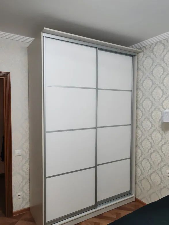 • Шкафы-купе с узкими дверями (шириной фасадов менее 60 см и высотой более 220 см) по умолчанию комплектуются роликами с системой против подскакивания дверей.