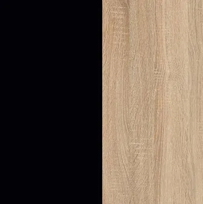 Контрастные полосы из ЛДСП в оттенке «Дуб Сонома» визуально облегчают облик мебели и придают общему виду больше привлекательности. Удобства при использовании добавляет закрытый цоколь, облегчающий уборку и улучшающий устойчивость конструкции.