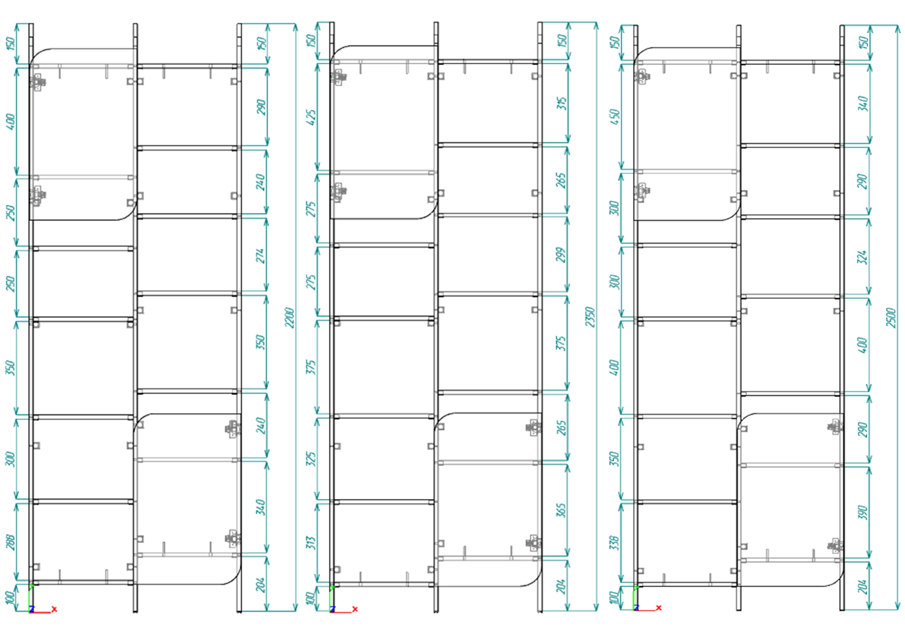 • Расстояние между полками меняется в зависимости от высоты.