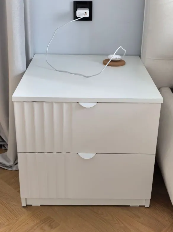 Купили такие сразу две тумбочки, доставили без каких-либо дефектов, ящики открываются мягко и не шумно. Выглядят нежно и по-современному.