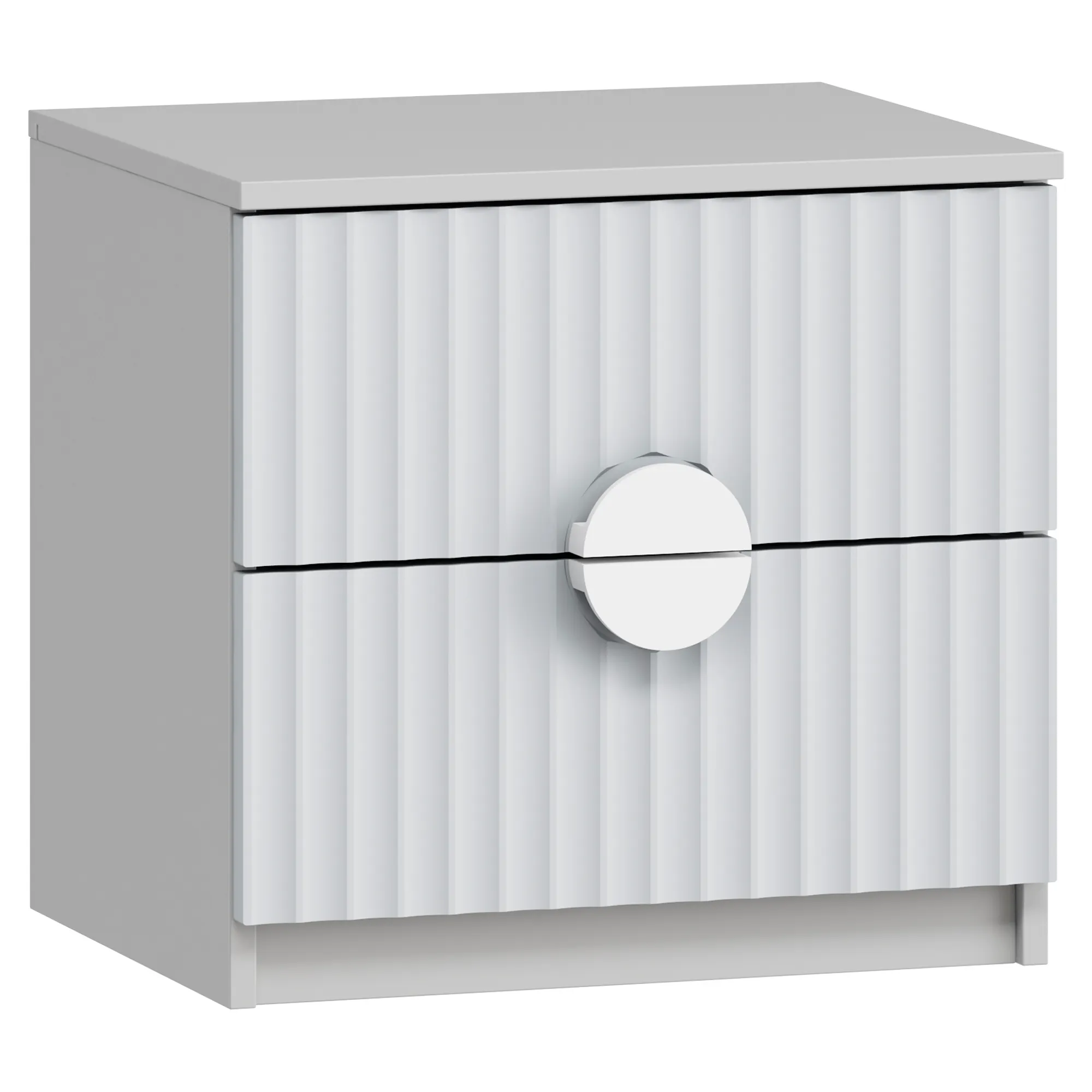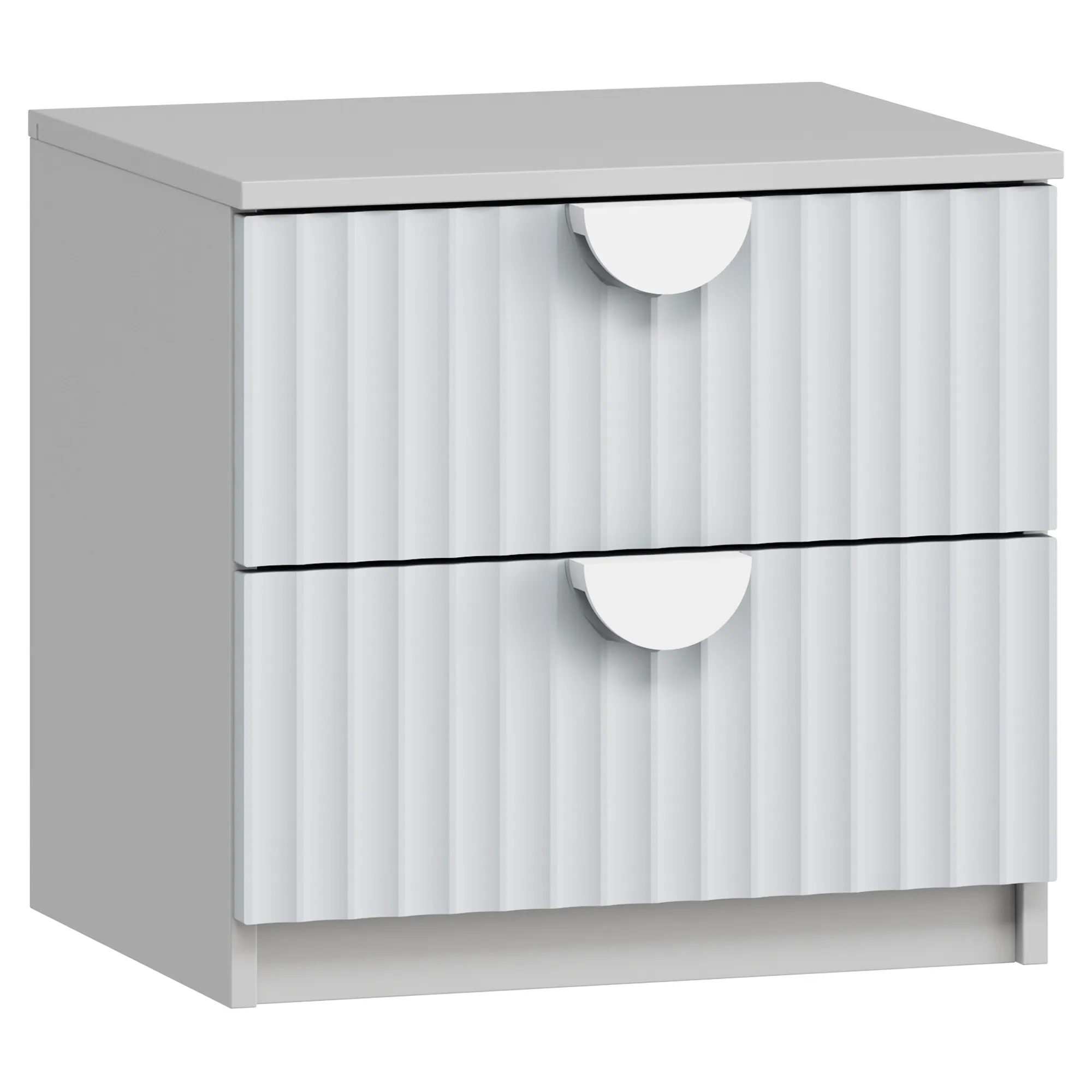 Фасады изготовлены из МДФ с ПВХ-пленкой. Волнообразная фрезеровка напоминает кремовый десерт или легкую морскую рябь — настоящее вдохновение для тех, кто ищет стильную мебель.